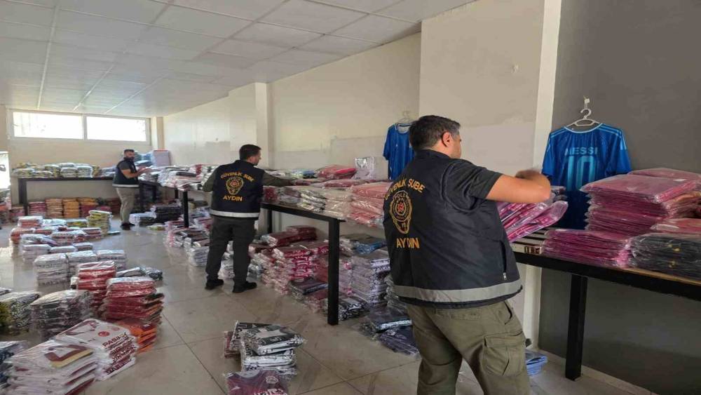 Aydın İl Emniyet Müdürlüğü Güvenlik Şube Müdürlüğü ekipleri gerçekleştirdikleri çalışma ile birçok futbol ve basketbol takımına ait formalar ile spor markalarının eşofman takımlarından oluşan 6 bin 908 adet taklit ürün ele geçirildi.