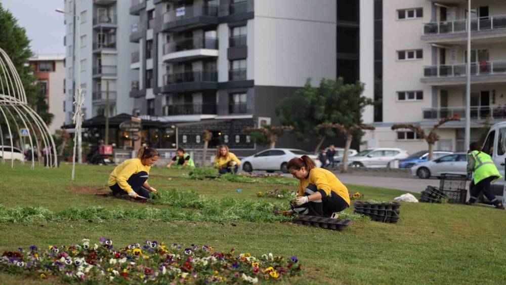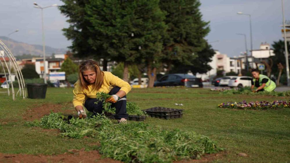 AYDIN - Aydın Büyükşehir Belediyesi, Aydın’ı mevsimlik çiçekler ile süslemeye devam ediyor. Aydın’ın tüm ilçelerinde çalışmalar hız kesmeden sürüyor. Büyükşehir Belediyesi Park ve Bahçeler Dairesi Başkanlığı ekipleri, 17 ilçenin tamamında gerçekleştirdiği çiçek dikimi işlemlerine devam ediyor. Aydın, tamamı Büyükşehir Belediyesi tarafından yetiştirilen on binlerce çiçek ile süsleniyor.