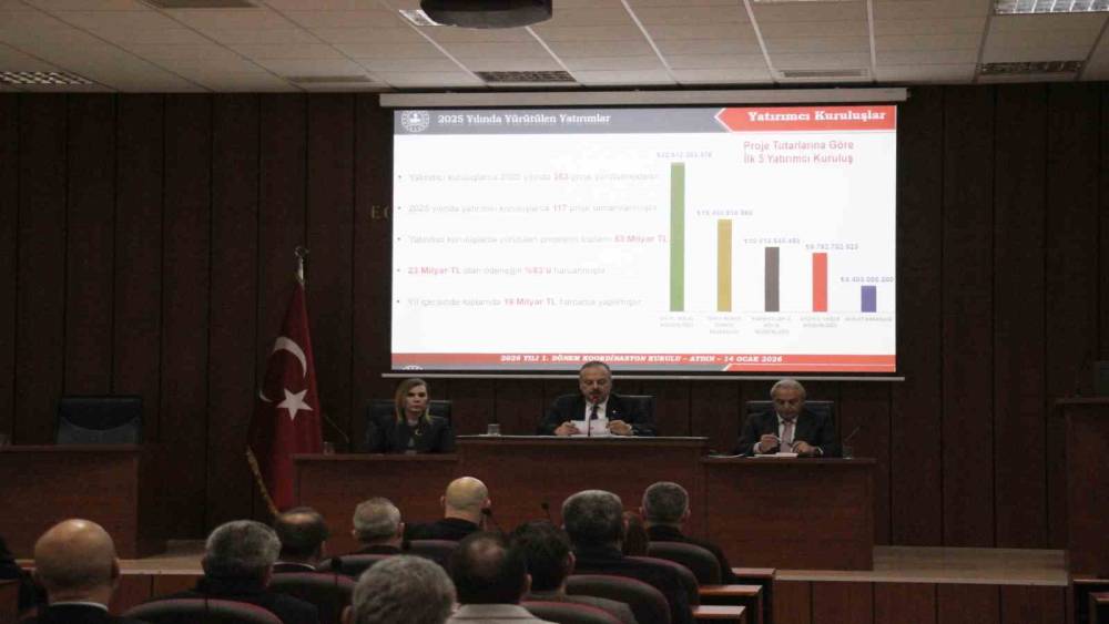 Aydın İl Koordinasyon Kurulu’nun 2026 yılı birinci toplantısının açılış konuşmasını yapan Vali Yakup Canbolat, toplantının Aydın’a hayırlı olması temennisinde bulunarak, 2025 yılı yatırımlarının ele alınacağını ve koordinasyon gerektiren hususların görüşüleceğini ifade etti. Vali Canbolat, il genelinde yatırımcı kuruluşlar bazında 2025 yılında toplam 353 projenin uygulandığını belirterek, bu projelerden 117’sinin tamamlandığını, 138’inin devam ettiğini, 9’unun ihale aşamasında olduğunu, 89 projenin ise çeşitli nedenlerle başlanamadığını açıkladı.