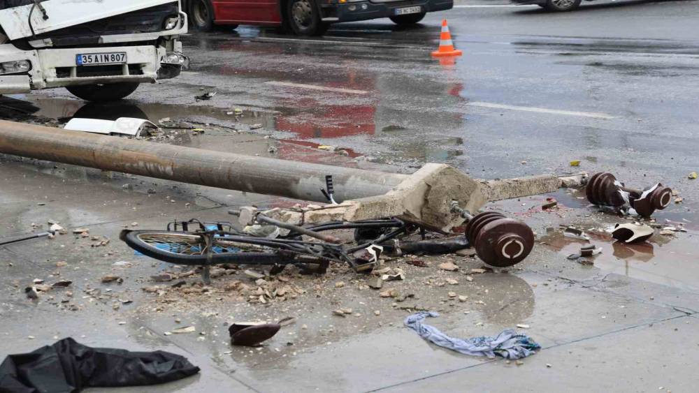 AYDIN - Olay, öğlen saatlerinde Köşk ilçesi Ovaköy mevkiinde yaşandı. Edinilen bilgiye göre, ışık ihlali yapan 35 AIN 807 plakalı kamyon önce 45 AIG 691 plakalı otomobile arkadan çarptı ardından da yol kenarındaki elektrik direğine çarptı. Çarpmanın şiddetiyle devrilen direk, o sırada bisikletiyle yoldan geçen 72 yaşındaki Niyazi Şen’in üzerine düştü. Tonlarca ağırlıktaki direğin altında kalan yaşlı adam olay yerinde hayatını kaybetti.