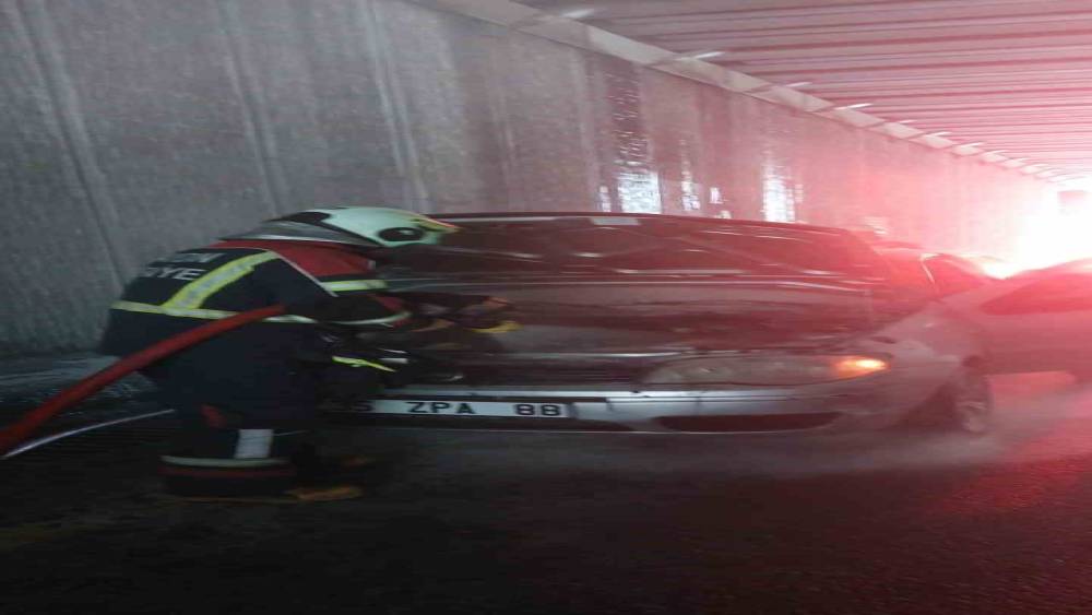 Aydın-Denizli karayolu Efeler ilçesinde bulunan alt geçitte bir araçta çıkan yangın paniğe neden olurken. alevler itfaiye ekiplerinin hızlı müdahalesiyle söndürüldü.