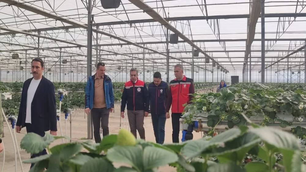 AYDIN - Aydın İl Tarım ve Orman Müdürü Ayhan Temiz, Efeler İlçe Tarım ve Orman Müdürü Mehmet Esen ile birlikte Efeler Organize Tarım Bölgesi’nde faaliyet gösteren bir serayı ziyaret etti. Ziyarette üreticilerle sohbet eden Temiz, çilek hasadına katılarak üretim çalışmaları hakkında bilgi aldı. Aydın’ın çilek üretiminde Türkiye’de önemli bir konuma sahip olduğunu belirten İl Müdürü Ayhan Temiz, üreticilerin emeğiyle her geçen yıl üretimin geliştiğini ifade etti. İl Müdürü Temiz, 2024 yılı TÜİK verilerine göre Aydın’da 27 bin 227 dekar alanda 112 bin 877 ton çilek üretimi gerçekleştirildiğini, Aydın’ın Türkiye’de çilek üretiminde ikinci sırada yer aldığını kaydetti. 2025 yılı ÇKS verilerine göre ise il genelinde 844 üreticinin 16 bin 456 dekar alanda çilek üretimi yaptığını sözlerine ekledi.