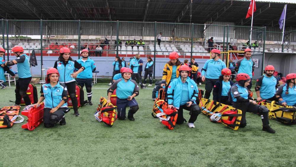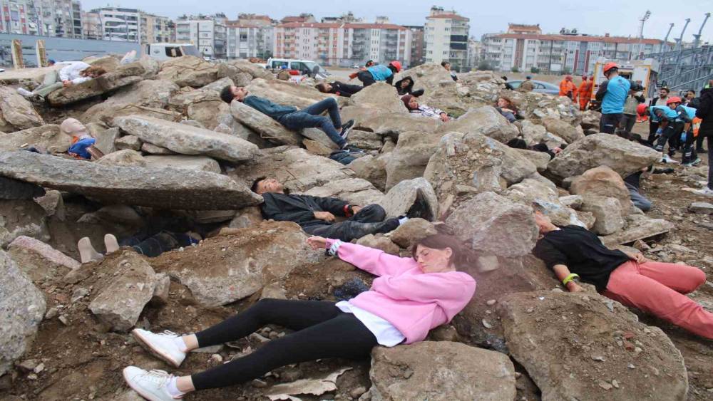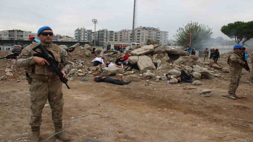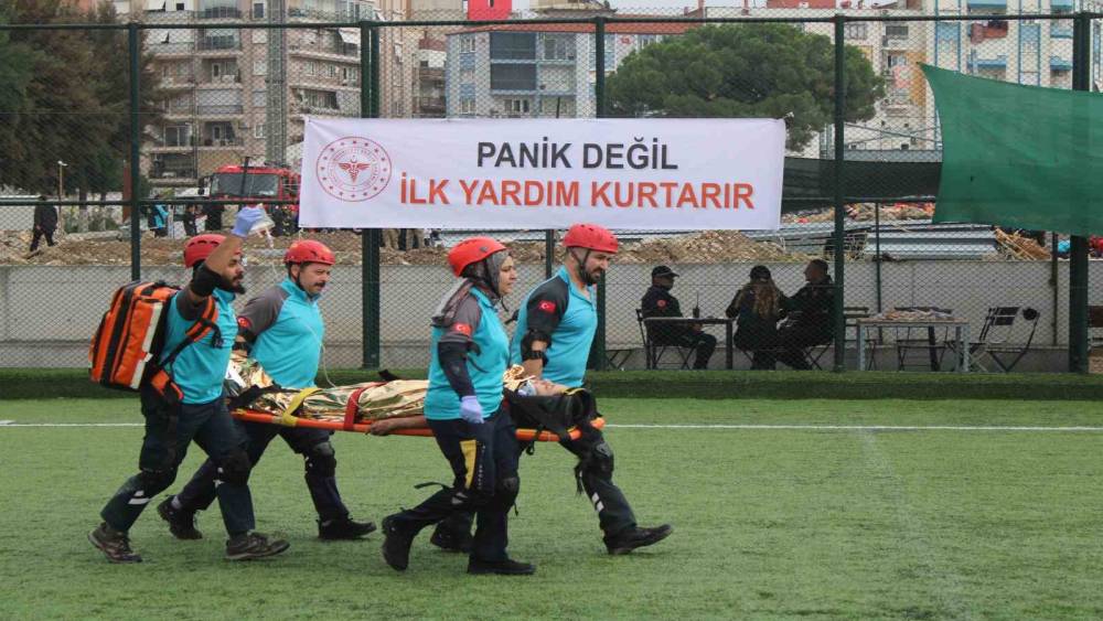 EFELER - Aydın’da muhtemel afet ve toplu yaralanma durumlarına hazırlık amacıyla, "Tribün Çökmesine Bağlı Toplu Yaralanma" senaryosu ile geniş çaplı bir saha tatbikatı gerçekleştirildi. Aydın Adnan Menderes Stadyumu’nda Aydın Valiliği koordinesinde düzenlenen tatbikata, Aydın İl Sağlık Müdürlüğü, AFAD İl Müdürlüğü, İl Jandarma Komutanlığı, Jandarma Filo Komutanlığı, Jandarma İHA Komutanlığı, İl Emniyet Müdürlüğü, Aydın Büyükşehir Belediyesi İtfaiye Daire Başkanlığı, Kızılay Aydın Şubesi, Adnan Menderes Üniversitesi Hastanesi, Atatürk Devlet Hastanesi, Aydın Devlet Hastanesi, Aydın Kadın Doğum ve Çocuk Hastalıkları Hastanesi, Aydın Sağlık Hizmetleri Meslek Yüksekokulu ve Söke Sağlık Hizmetleri Meslek Yüksekokulu katıldı. Toplam 429 personel ve 39 araç görev alırken, 138 öğrenci de yaralı olarak tatbikatta yer aldı.
