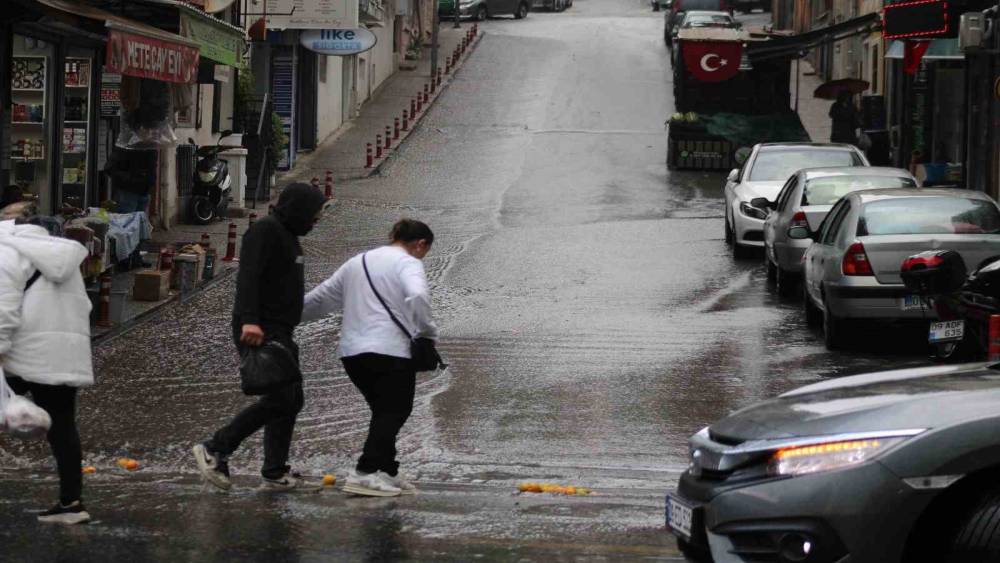 Aydın genelinde yağışlı hava etkisini gösterirken, öğle saatlerinde aniden bastıran ve yaklaşık 15 dakika süren sağanak yağış yollarda su birikintilerine neden oldu, vatandaşlar yağmura hazırlıksız yakalandı.
