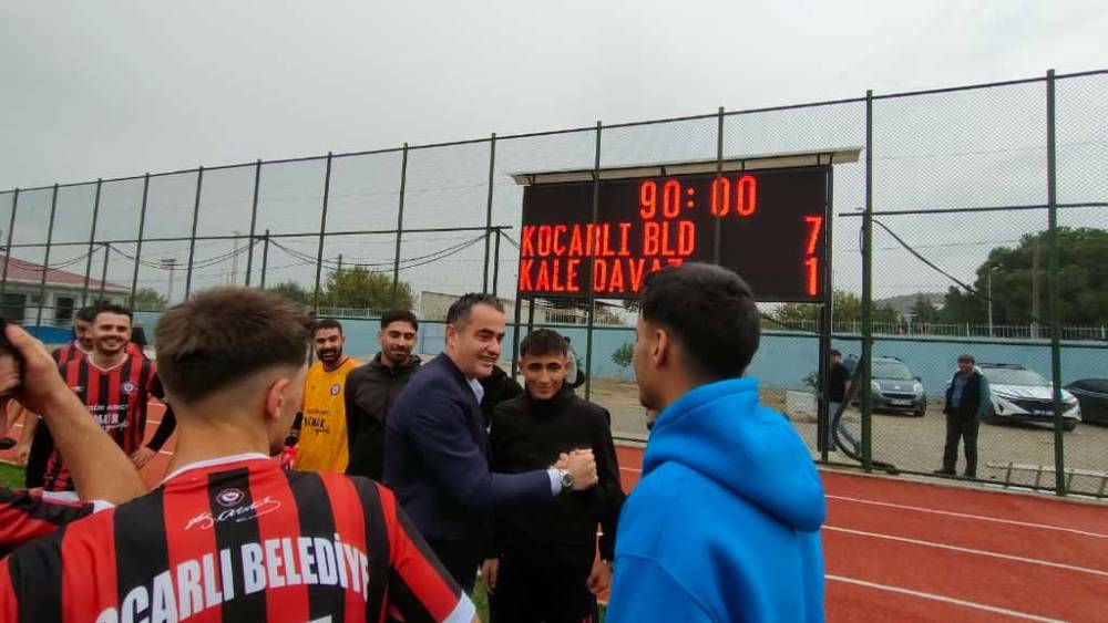 Koçarlı Belediye Başkanı Özgür Arıcı, Koçarlı Belediyespor’un 7-1’lik Kale Davazspor galibiyetinin ardından, sahaya indi. Teknik heyet ve futbolcuları tek tek tebrik eden Başkan Arıcı, futbolculara olan borçlarının tamamını ödeyeceğini ve 5 bin lira galibiyet primi vereceğini açıkladı. Bu müjdeyle sahadaki sevinci ikiye katlandı.