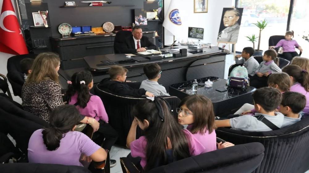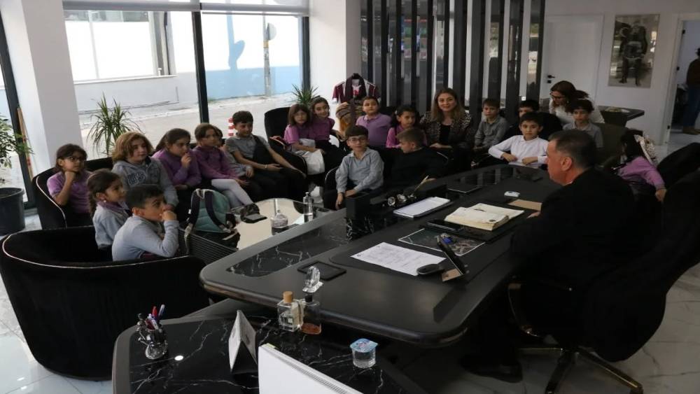 Yenipazar Belediye Başkanı Malik Ercan, ilkokul öğrencilerini makamında ağırlayarak sorularını yanıtladı.