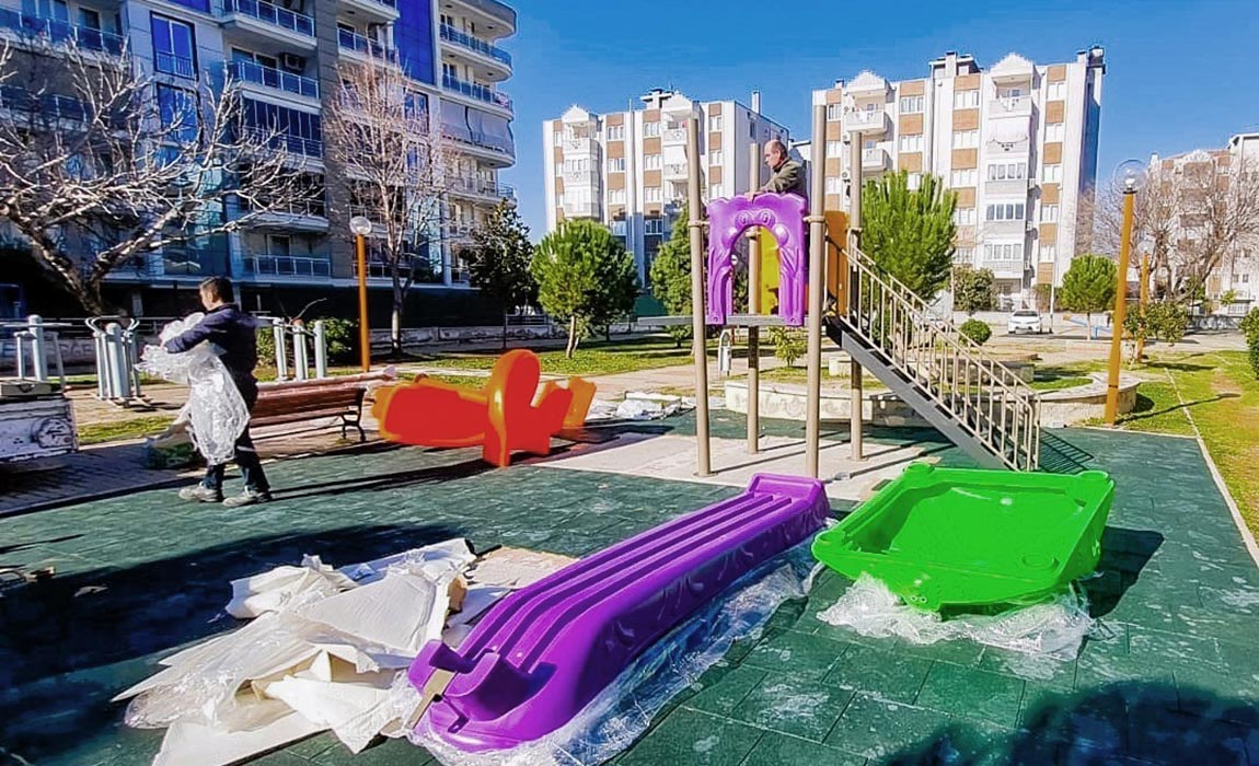 EFELER - Bu kapsamda görev alan Efeler Belediyesi Park ve Bahçeler Müdürlüğü ekipleri, Adnan Menderes Mahallesi Adnan Saygun Parkı ile Mimar Sinan Mahallesi Prof. Dr. Mehmet Fuat Turgut Parkı’nı yeniledi. Söz konusu parklarda yeni oyun gruplarının montajı yapılırken, çocukların güvenliği için zeminlere yeni kauçuk döşeme uygulaması da gerçekleştirildi.