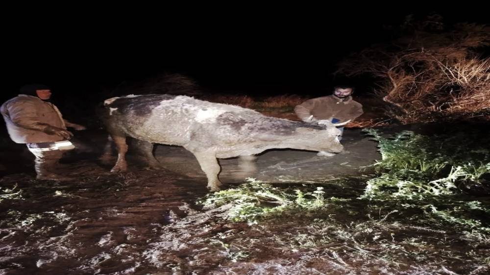 Aydın’ın Germencik ilçesinde bataklığa saplanan büyükbaş hayvan belediye zabıta ve jandarma ekiplerinin ortak çalışması ile kurtarıldı.