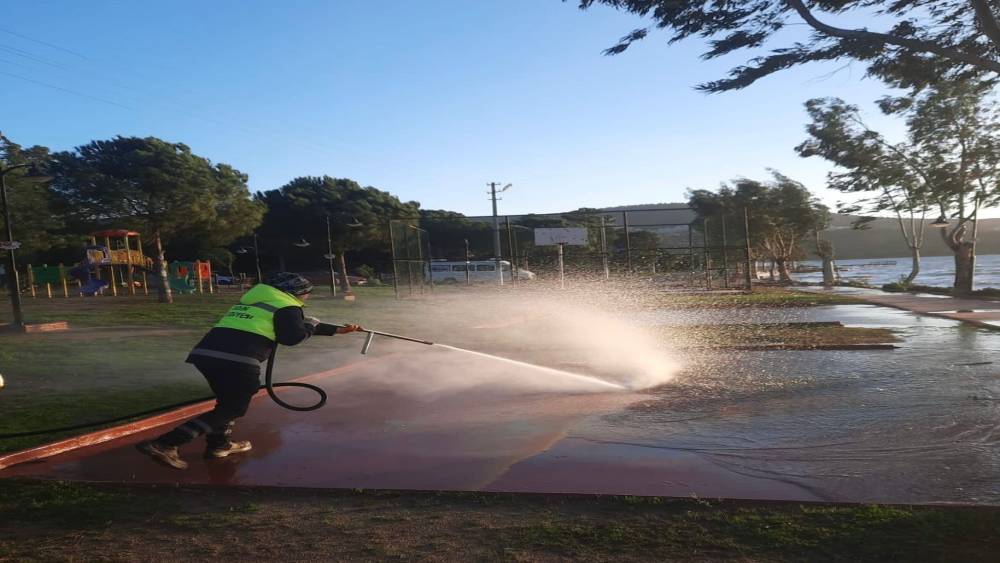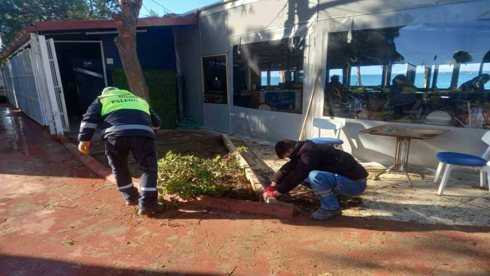 Aydın’ın Didim ilçesinde saha çalışmalarını sürdüren belediye ekipleri, ayrıca fırtınadan zarar gören yerlerde de onarım çalışması gerçekleştirdi.