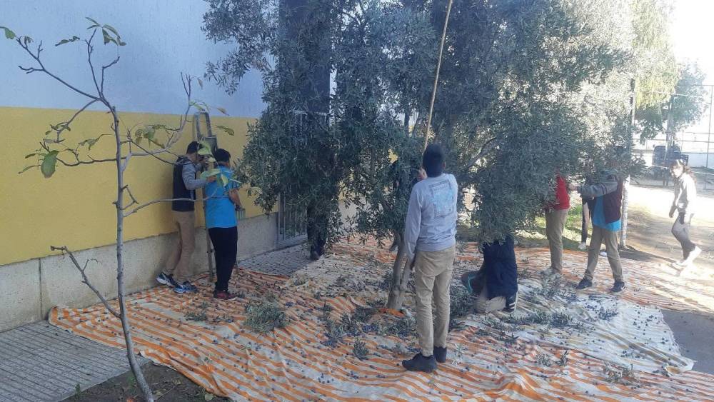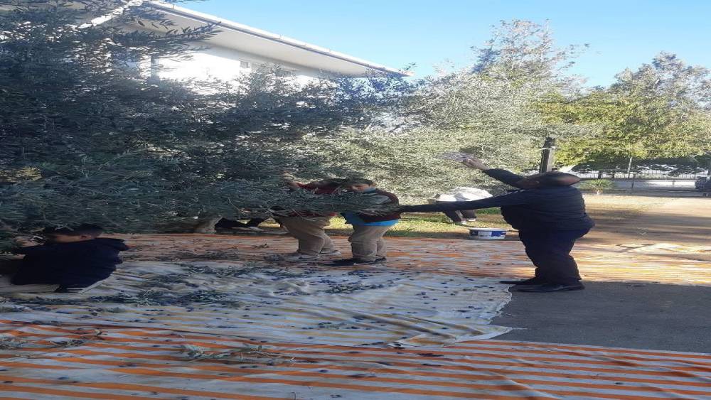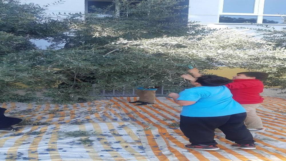 Aydın Bozdoğan ilçesinde öğrenciler, okul bahçesindeki zeytin ağaçlarında hasat yaptı.
