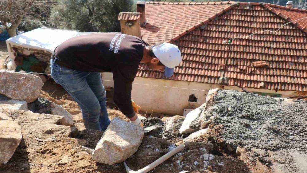 Bozdoğan Belediyesi, Karabağlar Mahallesi’nde ihtiyaç duyulan noktada başlattığı taş duvar örme çalışmalarını tamamladı.