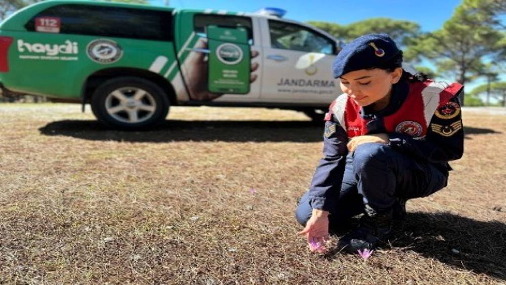 Jandarma ekipleri, Aydın’ın Koçarlı ilçesinde yetişen ve koparılması halinde 557 bin 212 TL para cezası bulunan Sultan Çiğdemi’ne yönelik sahada kontroller gerçekleştirdi.