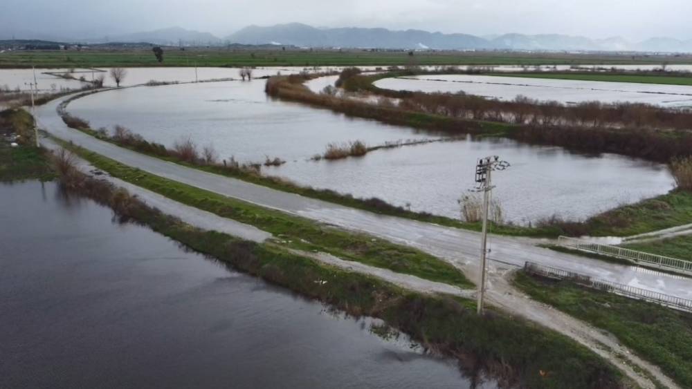 Aydın’da sağanak yağışların ardından debisi artan Büyük Menderes Nehri’nde meydana gelen taşkın sonrası karayolunda ulaşım önlem amaçlı kapatıldı.