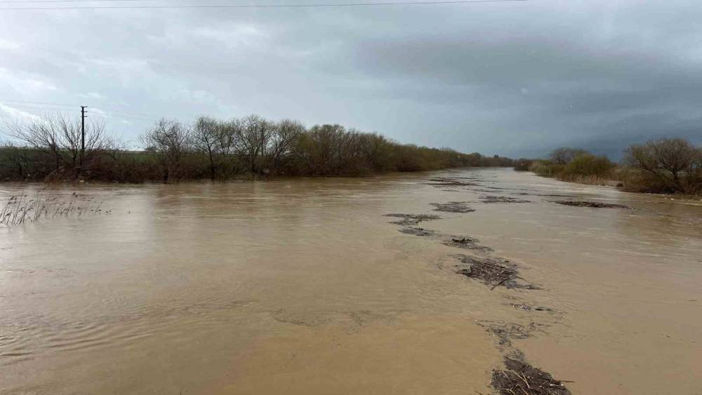 AYDIN - Sağanak yağışlı havanın etkili olduğu Aydın’da, yağışlar sonrası debisi yükselen Büyük Menderes Nehri’nin taşması, Aydın’da ulaşımı olumsuz etkiledi. Taşkın yaşanan bölgede Koçarlı Yeniköy Mahallesi ile Germencik arasındaki karayolu güvenlik gerekçesiyle araç trafiğine kapatıldı. Yoğun yağışların etkili olduğu bölgede Büyük Menderes Nehrindeki su seviyesinin hızla yükselmesi sonucu nehir yatağından taşan sular, Germencik ile Yeniköy arasındaki yolun bir bölümünü su altında bıraktı. Tarım arazileri sular altında kaldı. Menderes Nehri üzerinde bulunan köprüden araçların geçmemesi için uyarı levhası yerleştirilirken, sürücüler alternatif güzergahlara yönlendirildi.