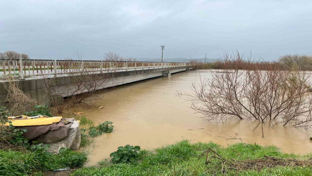 Büyük Menderes nehrindeki taşkın karayolunu kapattı