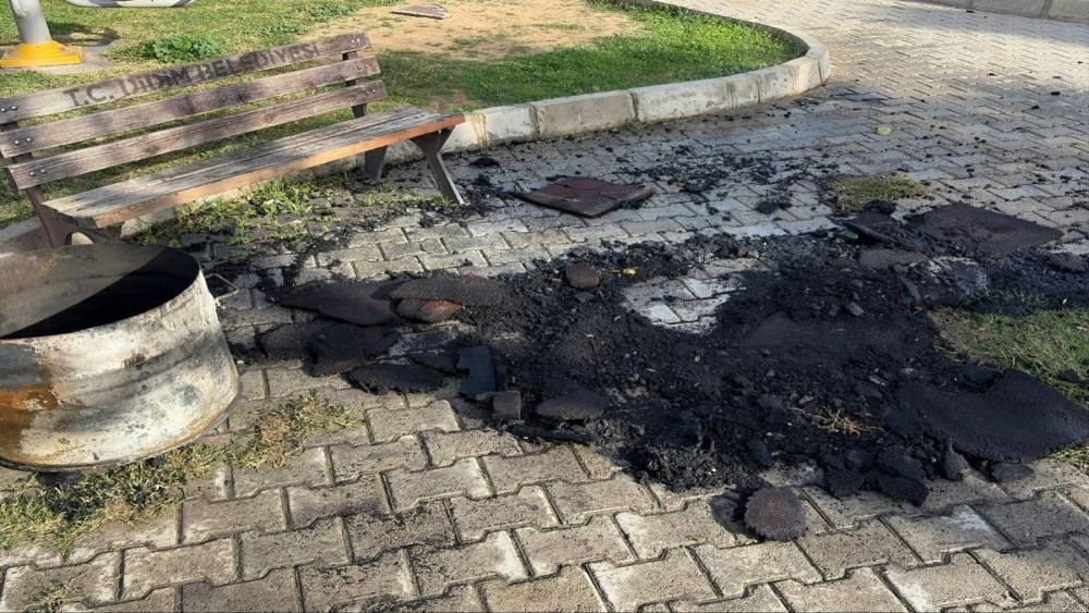 Çocukların oyun alanı tahrip edildi, zemin kaplamaları ateşe verildi