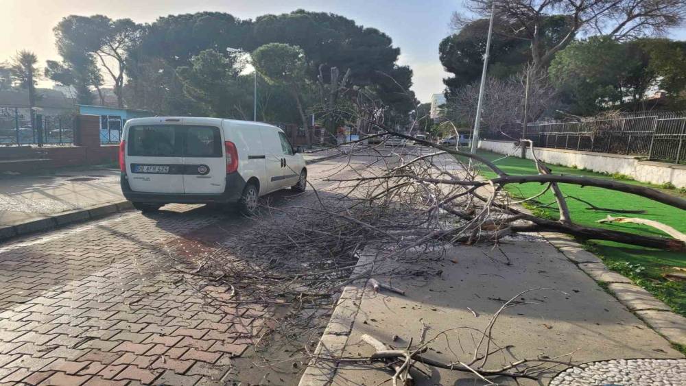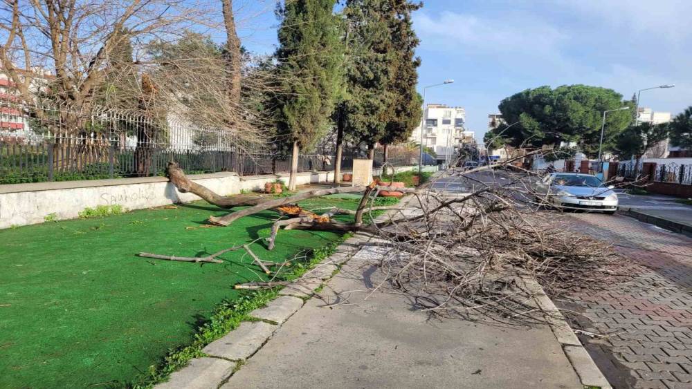 Aydın’ın Efeler ilçesinde eski müzenin bahçesindeki çürüyen ağaç gövdesinden kırılarak yola doğru devrilirken, olayda kimsenin yara almaması teselli kaynağı oldu.