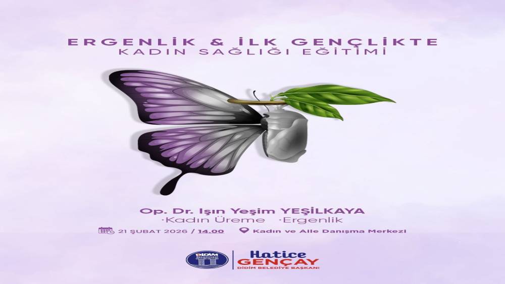 DİDİM - 21 Şubat Cumartesi günü saat 14.00’te Kadın ve Aile Danışma Merkezi’nde gerçekleştirilecek eğitimin konuşmacısı, alanında uzman Op. Dr. Işın Yeşim Yeşilkaya olacak. Eğitimde ergenlik ve ilk gençlik döneminde kadın sağlığına ilişkin temel konular ele alınacak; katılımcılar merak ettikleri soruları doğrudan uzmana yöneltme imkanı bulacak.