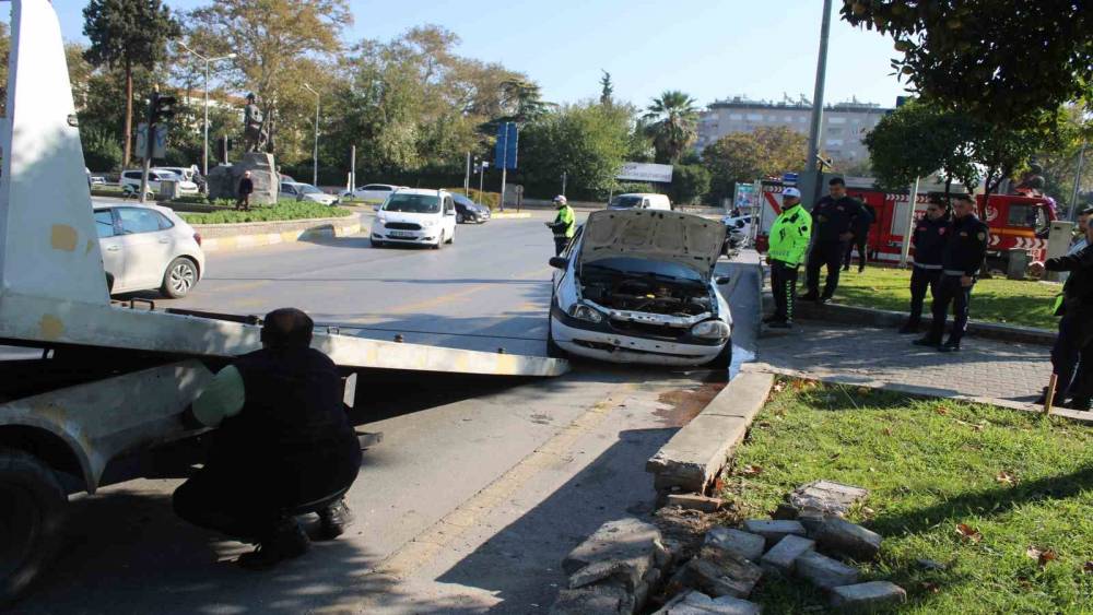Direksiyon hakimiyeti kaybolan ehliyetsiz sürücü refüje çarptı