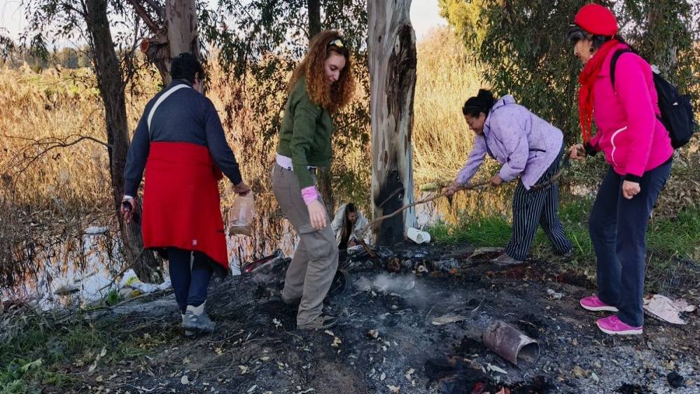 Doğaseverler kanal kenarında çıkan yangını söndürdü