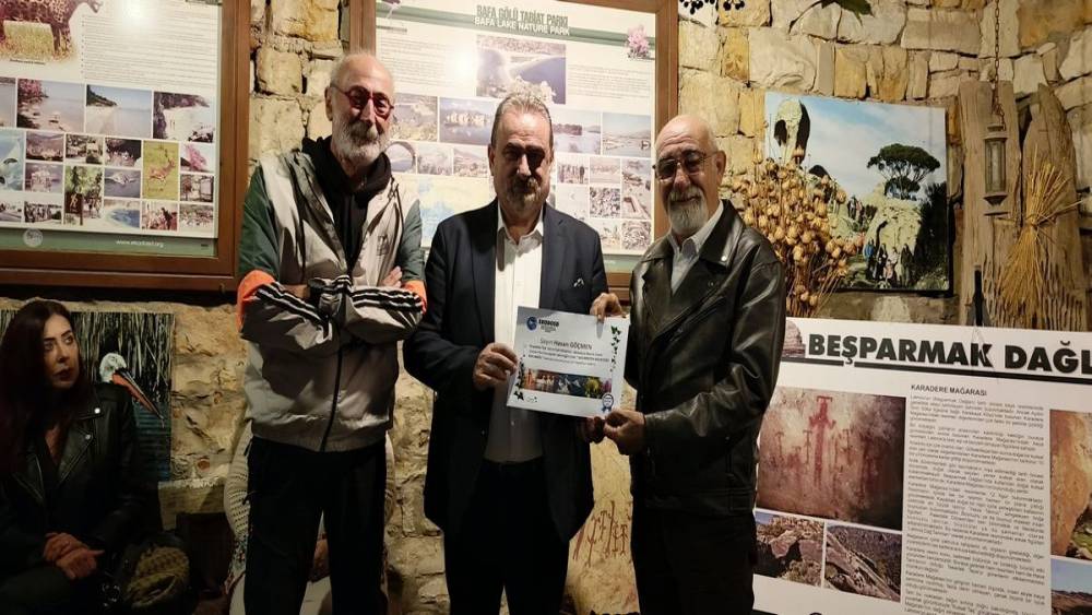 Yapılan sunumdan sonra Hasan Göçmen’e, Kent Konseyi Başkan Yardımcısı Bülent Ay ve Güzelçamlı Merdiven Toplumsal Girişim ve Gelişim Derneği’nden Mesut Yalazan tarafından EKODOSD’un teşekkür belgesi takdim edildi.
