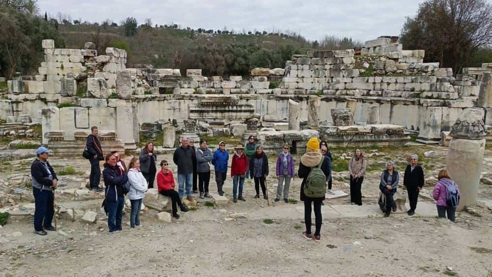 ’Aşkların ve Gladyatörlerin’ kenti olarak bilinen Stratonikeia Antik Kenti’ni ziyaret ettiklerini ifade eden Sürücü; "Antik kentte incelemelerde bulunduk. Rehberimiz Ayda Su Pusar’ın aktardığı bilgiler ve rehber üyemiz Müeyyet Tiritoğlu Akdeniz’in katkılarıyla, kentin gelişmiş altyapı sistemlerini, kanalizasyon düzenini, Roma hamamlarını, su kanallarını, havuzlarını ve anıtsal çeşmelerini yakından inceledik. Ayrıca Roma İmparatorluk dönemine ait, kentte satılan ürünler ve sunulan hizmetlere ilişkin tavan fiyatları gösteren kitabeler de büyük ilgi uyandırdı. Antik kentin içinde restore edilerek yaşatılan taş evleri gezdik, yerel dükkanlardan alışveriş yaparak bölge ekonomisine katkıda bulunduk, kahvelerinde çaylarımızı içerek bu tarihi atmosferi deneyimledik. Seyahatimizin bir diğer durağı, Tanrıça Hekate’ye adanan Lagina Kutsal Alanı oldu. Burada düzenlenen törenleri, farklı kentlerden gelen temsilcileri ve Tanrıça Hekate’nin anahtarını taşıyan bakirenin öncülüğündeki görkemli tören alayının hikayesini dinledik. Rotamızın son durağında ise Yatağan’a bağlı, doğal plato görünümü ve sinema-dizi çekimleriyle tanınan Bozüyük’e (Güzelköy) ulaştık. Köy meydanını ve otantik evlerini gezdik, 800 yılı aşan anıt çınara hayranlıkla dokunduk. Pınarbaşı Aplangeç Mesire Alanı’nda yemeklerimizi yedikten sonra Kuşadası’na geri döndük. Doğanın sunduğu en değerli varlıklardan biri olan suyun izinde, tarihle iç içe gerçekleştirdiğimiz bu etkinlik hem farkındalık oluşturdu hem de bizlere sorumluluğumuzu bir kez daha hatırlattı" şeklinde konuştu.