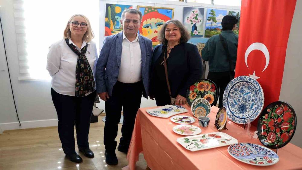 Efeler Belediyesi’nin sosyal belediyecilik anlayışıyla hayata geçirdiği kurslar, özellikle kadınların hem sosyalleşmesine hem de yeni beceriler kazanmasına önemli katkı sağlıyor. Bu kurslar sayesinde katılımcılar, yeteneklerini keşfetme fırsatı bulurken aynı zamanda el sanatları alanında kendilerini geliştirerek kalıcı eserler ortaya koyuyor. Efeler Belediyesi ile Efeler Halk Eğitim Merkezi iş birliğinde düzenlenen Resim ve Çini Kursu Sergisi düzenlenen tören ile açıldı. Serginin açılışını gerçekleştiren Efeler Belediye Başkanı Anıl Yetişkin, kursiyerlerin el emeği göz nuru eserlerini tek tek inceledi. Kursiyerlerle yakından ilgilenerek ortaya koydukları çalışmalardan dolayı kendilerini tebrik eten Yetişkin, kursiyerlerin sanata olan ilgisinin ve üretkenliğinin memnuniyet verici olduğunu ifade etti.