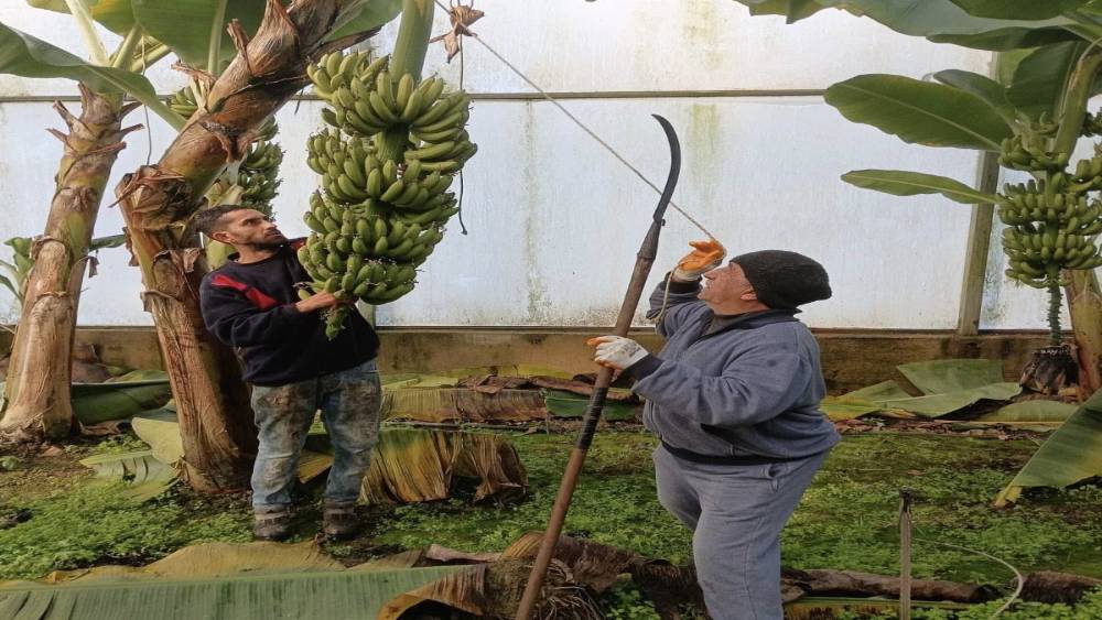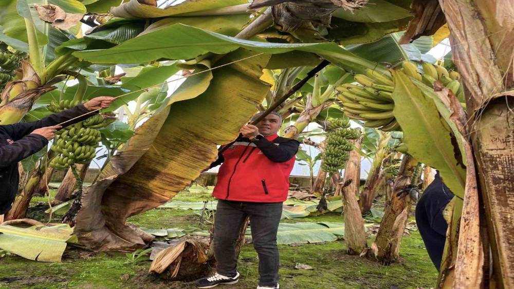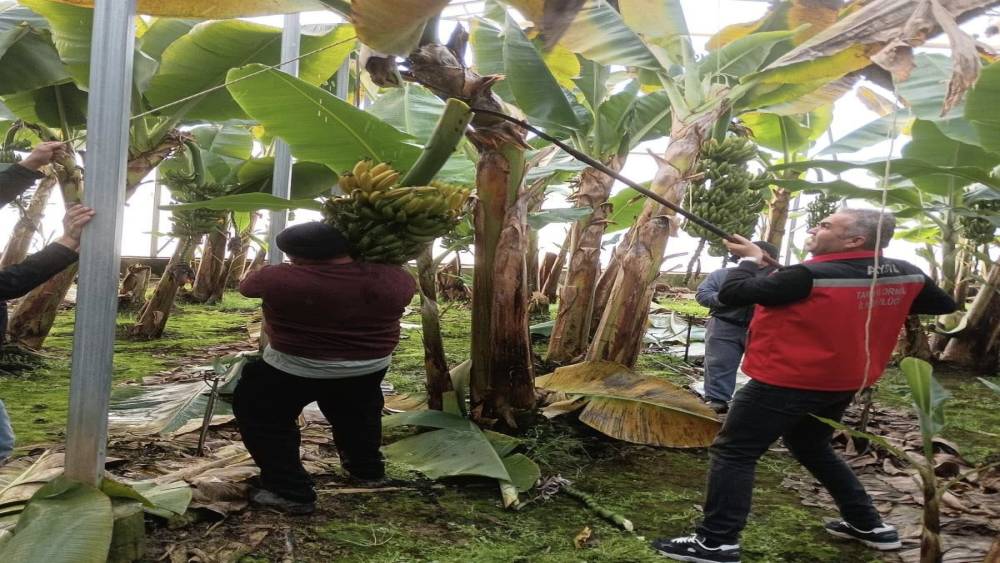 Efeler ilçesi Dalama Mahallesi’nde 4 dekarlık alanda kurulan muz bahçesinde başlayan hasatta, 700 ağaçtan sezonda 26-27 ton ürün alınması hedefleniyor.