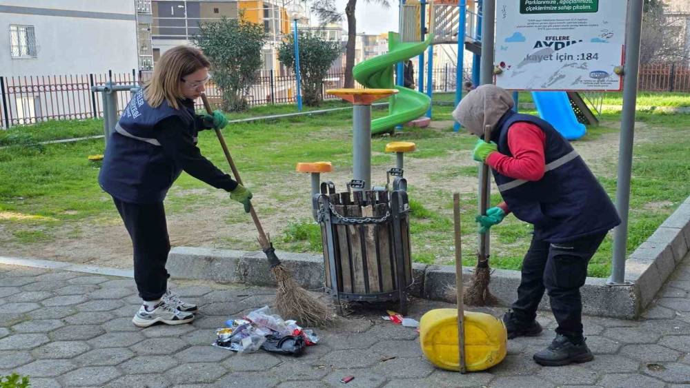 Efeler Belediyesi Park ve Bahçeler Müdürlüğü ekipleri, günlük olarak yaklaşık 70 parkın temizliğini gerçekleştiriyor. Çim biçme ve ağaç budama işlemleri yapılırken, yıpranan oturma grupları ve dinlenme noktaları da elden geçiriliyor. Çocuk oyun alanlarında ise güvenlik önceliği gözetiliyor. Geçtiğimiz yıl 43 parkta zemin yenileme çalışmaları yapılarak darbe emici kauçuk zeminin döşendiği belirtilirken, 2026 yılının ilk üç ayında ise 10 parkın yenileme çalışmaları tamamlandı ve kullanımına açıldı.