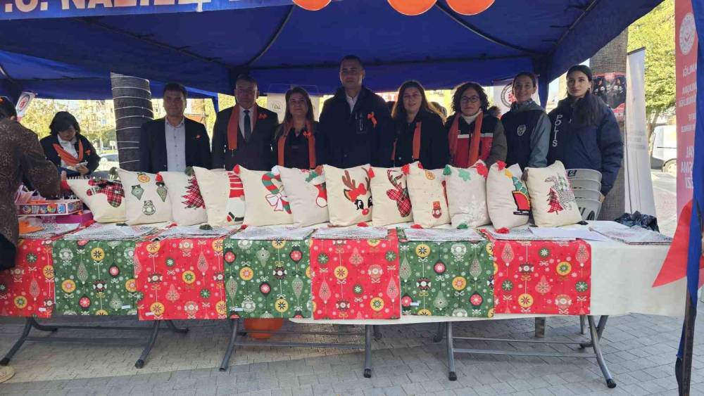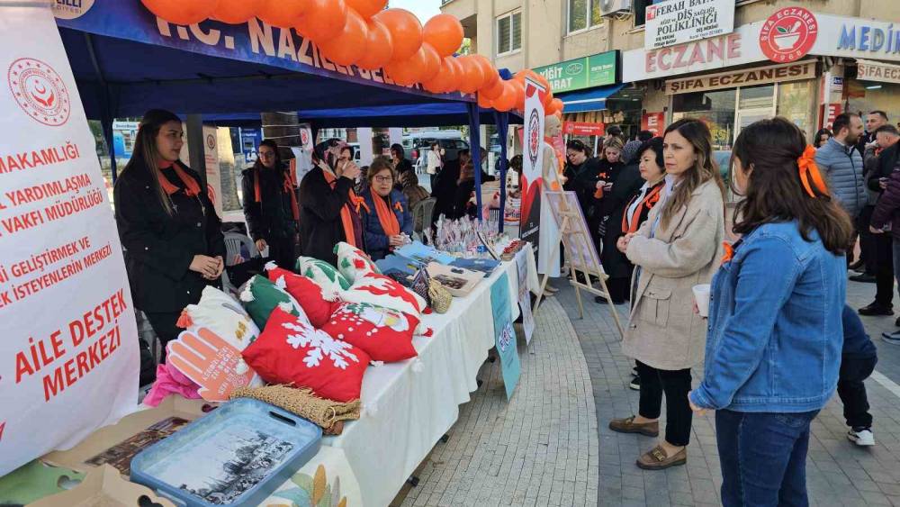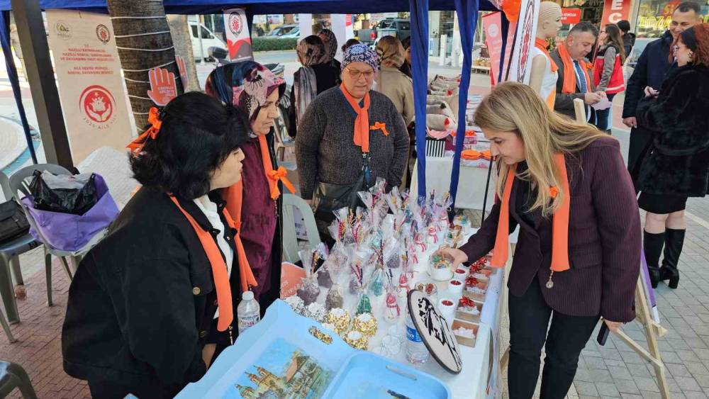 Kursiyerler mutlu oldukça kendilerinin mutlu olduğunu ifade eden ADEM eğiticisi Feray İktu; " Nazilli Kaymakamlığı Sosyal Yardımlaşma ve Dayanışma Vakfı tarafından yapılan kurslarımız haftada 5 gün oluyor. Kurslarımızda mesleki ve kişisel gelişim eğitimler oluyor. Kadınlarımızın el emeğiyle yaptığı ürünleri sergilerimizle görücüye çıkarıyoruz. Satıp buradan elde ettikleri gelirlerle ev ekonomilerine de katkıda bulunuyoruz. Bugün Kadına Şiddetle Mücadele Günü. Biz kadın olarak ve kadınlarla çalışarak bugüne dahil olmak istedik. Kadına şiddete tepki olarak turuncu renkle sergide yer aldık. Biz kadınlara 2023 yılından bu yana ADEM ve sodam olarak destek olmaya çalışıyoruz. Kursiyerlerimiz mutlu oldukça bizde mutlu oluyoruz" ifadelerini kullandı.
