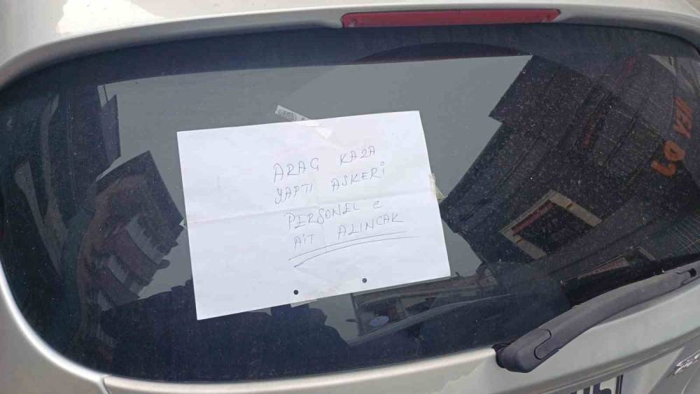 Kaza sonrası askeri personel olduğu öğrenilen sürücünün hastaneye kaldırılması nedeniyle araç bir süre yol ortasında kaldı. Çevredeki vatandaşlar ise herhangi bir olumsuzluk yaşanmaması adına araca not astı. "Araç kaza yaptı. Askeri personele ait. Alınacak" ifadelerinin yazıldığı not dikkat çekti.