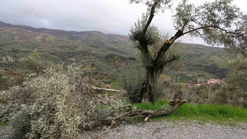 KÖŞK - Meteoroloji Bölge Müdürlüğü’nün yağış ve fırtına uyarısının ardından Aydın’ın Köşk içesine bağlı kırsal Başçayır, Cumayanı, Sarıçam ve Ahatlar mahallelerinde yağışla birlikte fırtına etkili oldu. Başçayır deresinden Çatma Yaylası’na kadar pek çok evin çatısı fırtınada zarar görürken bazı arazilerdeki zeytin ağaçlarının dalları da kırıldı. Cumayanı köyünün camisinin minaresinin de zarar gördüğü fırtınada çok sayıda evin çatısı zarar gördü.