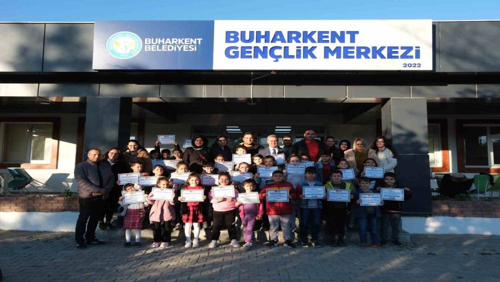 Buharkent Belediyesi’nin çocuklara yönelik düzenlediği satranç kursunu başarıyla tamamlayan öğrenciler, düzenlenen programda katılım belgelerini aldı.