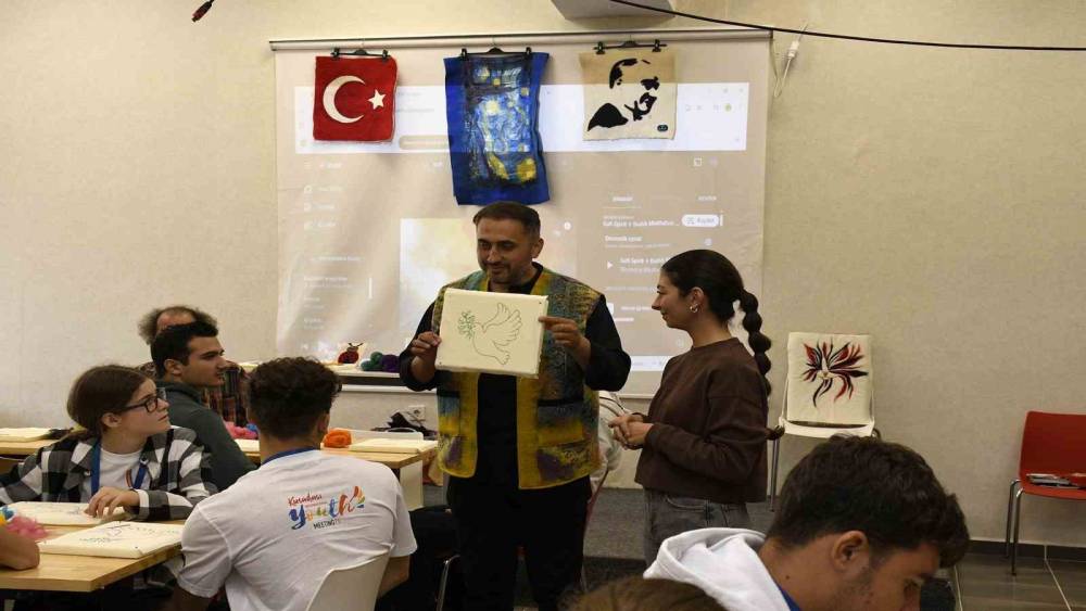 Kuşadası Belediyesi’nin ev sahipliğinde başlayan gençlik toplantısı 2’inci gününde keçe atölyesi ile devam etti. Öğrenciler atölyede birbirinden renkli çalışmalar yaparak eğlendi.