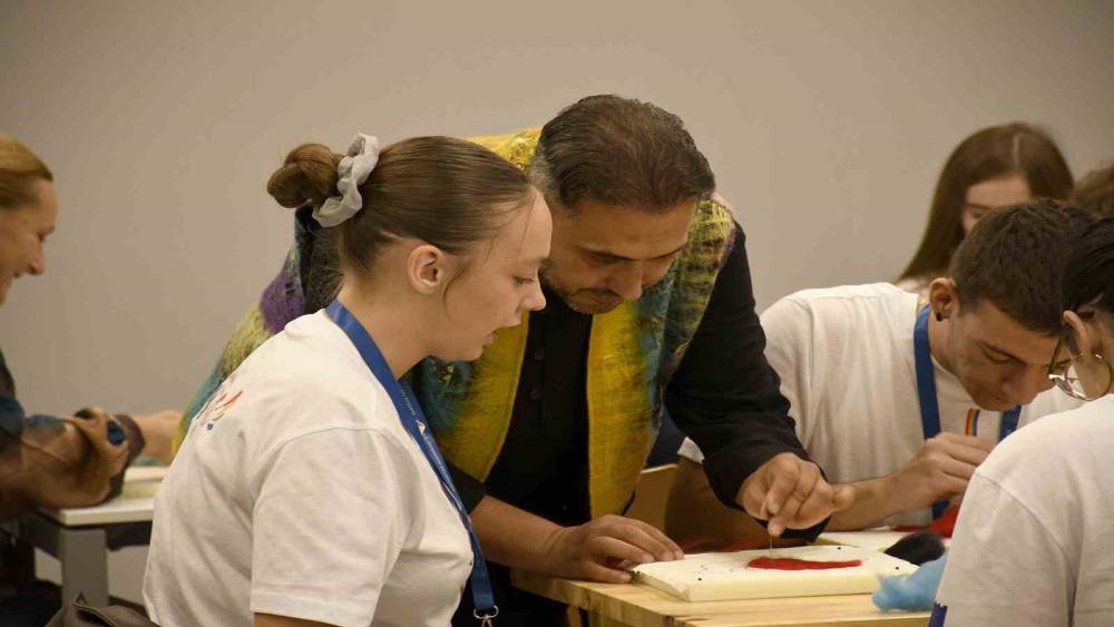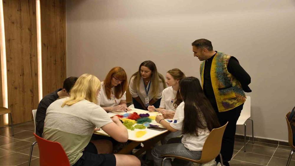 Dış İlişkiler Proje Yöneticisi Burcu Kanbal, "Programın bugün 2’inci günündeyiz. Dün muazzam bir açılış oldu. Bugün ise biraz geleneksel motifleri misafirlerimizle paylaşabileceğimiz bir atölye planladık. Şuan tüm arkadaşlarımız keçe atölyesindeler. Şuan tüm öğrenciler çok büyük keyif alıyorlar. İstedik ki hem Kuşadası’nı simgeleyen bir güvercin motifinin işleyelim dedik. Hem de kendi ülkelerine ve kendi şehirlerine buradan bir hediye götürebilsinler, bununda bir el emeği ürünü olması oldukça kıymetli bizim için. Hepsi çok mutlu görünüyor" dedi.