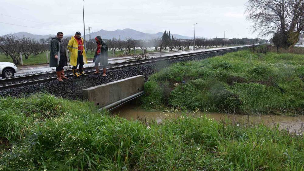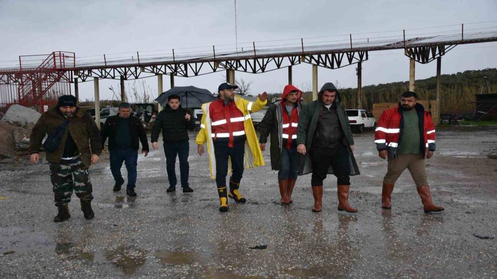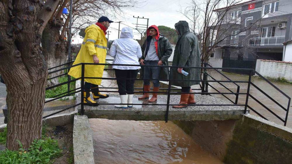 Germencik’te sağanak yağış sonrası başkan çizmeleri giyip sokağa çıktı