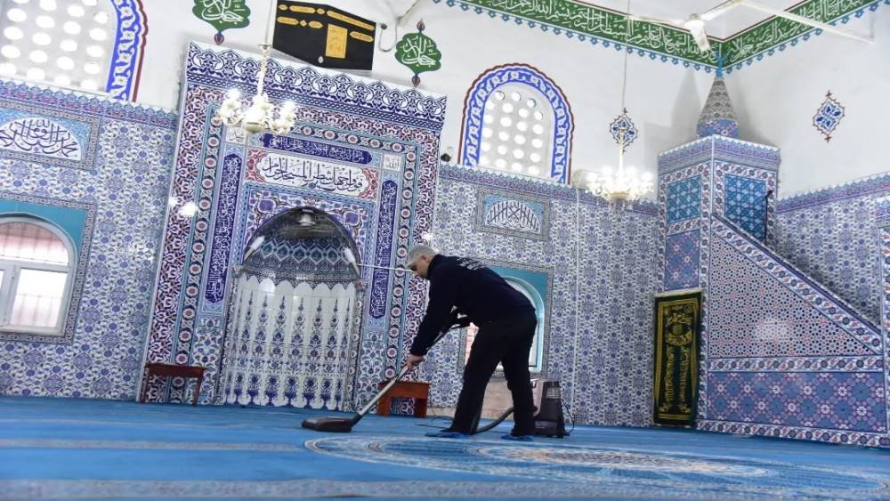 İncirliova Belediyesi ekipleri ilçedeki camilerde temizlik çalışmalarını sürdürüyor.