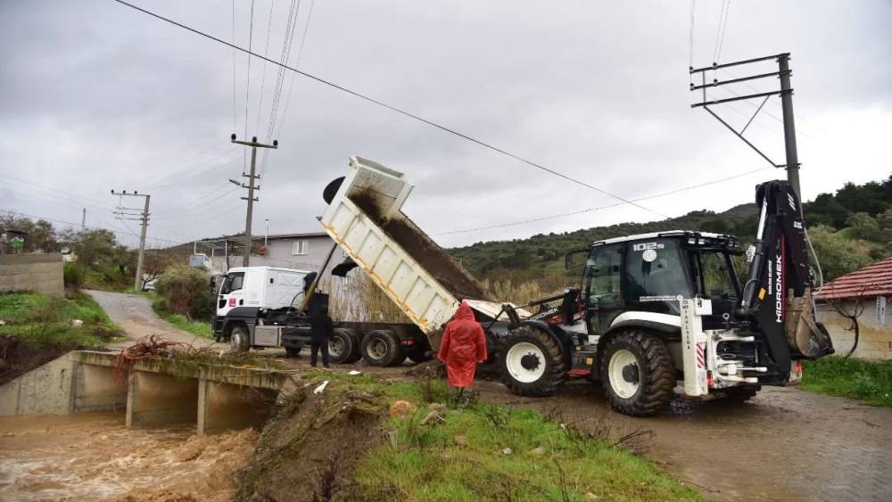 Aydın’ın İncirliova ilçesinde etkili olan yoğun yağışlar sonrası Eğrek Mahallesi Çay Mevkii’nde köprü ayağında ve yolda meydana gelen hasar, belediye ekiplerinin hızlı müdahalesiyle giderildi.