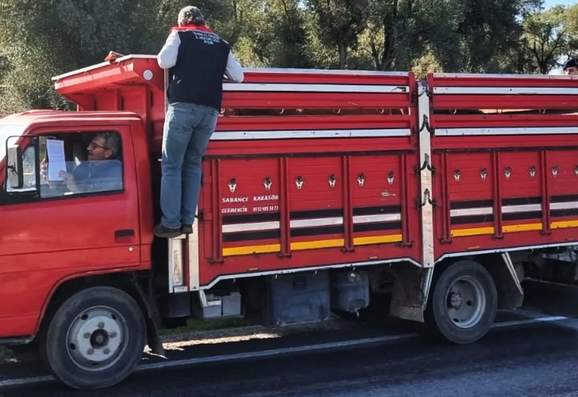 Aydın’ın Karpuzlu ilçesinde hayvan sevki yapan araçlar durdurularak belgeler ve sağlık kontrolleri tek tek incelendi.