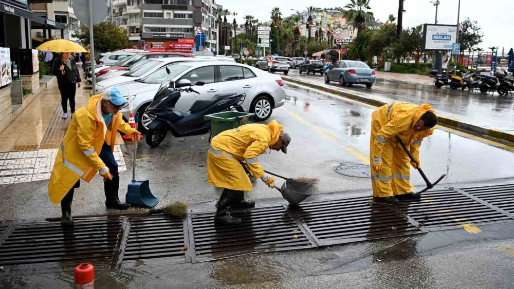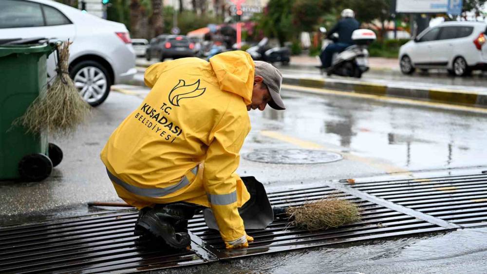 AYDIN- Kuşadası Belediyesi kent genelinde etkili olan sağanakta teyakkuza geçerek yaşanan tüm olumsuzluklara anında müdahale etti. Fen İşleri Müdürlüğü, Park ve Bahçeler Müdürlüğü ile Temizlik İşleri Müdürlüğü’ne bağlı ekipler tarafından yağıştan etkilenen cadde ve sokaklar temizlendi. Yağmur suyu mazgallarında biriken yabancı maddeler alındı.
