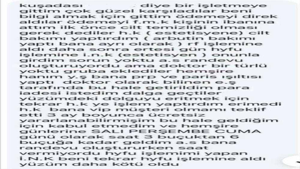 Mağdur olduklarını belirten kadınların savcılığa sunduğu dilekçede, sağlık yetkisi bulunmayan kişiler tarafından damar yolu açılarak serum uygulandığı, deri altı enjeksiyon işlemleri yapıldığı belirtildi. Dilekçede ayrıca işlemler tamamlanmadan tam ödeme alındığı ve taahhüt edilen hizmetlerin önemli bir kısmının yerine getirilmediği belirtildi.