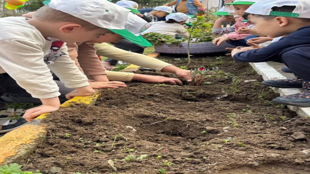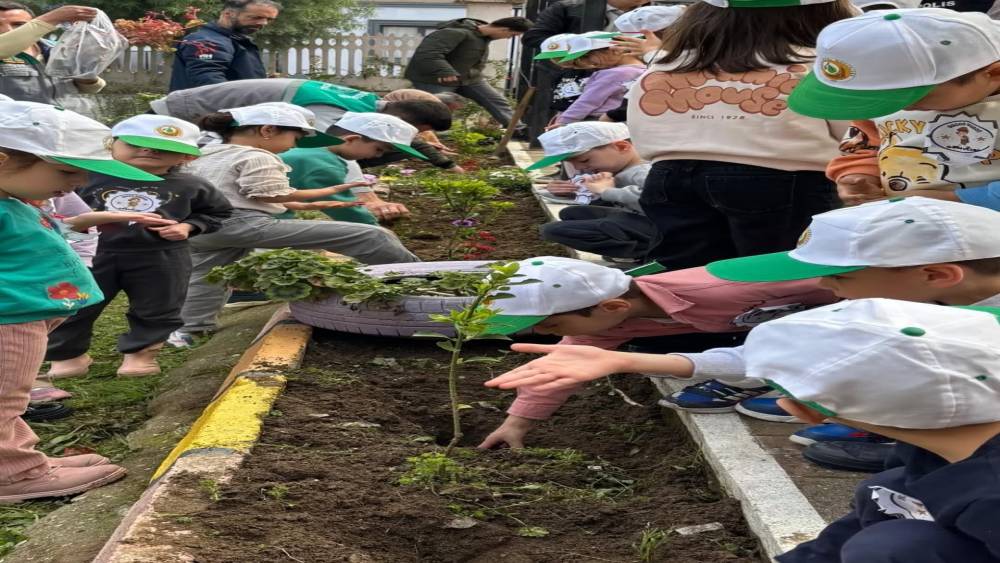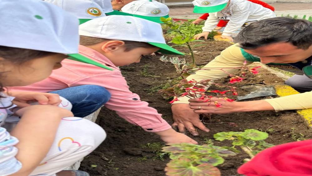 Aydın’ın Yenipazar ilçesinde düzenlenen ’Yeşil Vatan’ etkinliğinde minik eller toprakla buluşurken, anaokulu öğrencileri fidanları toprakla buluşturdu.