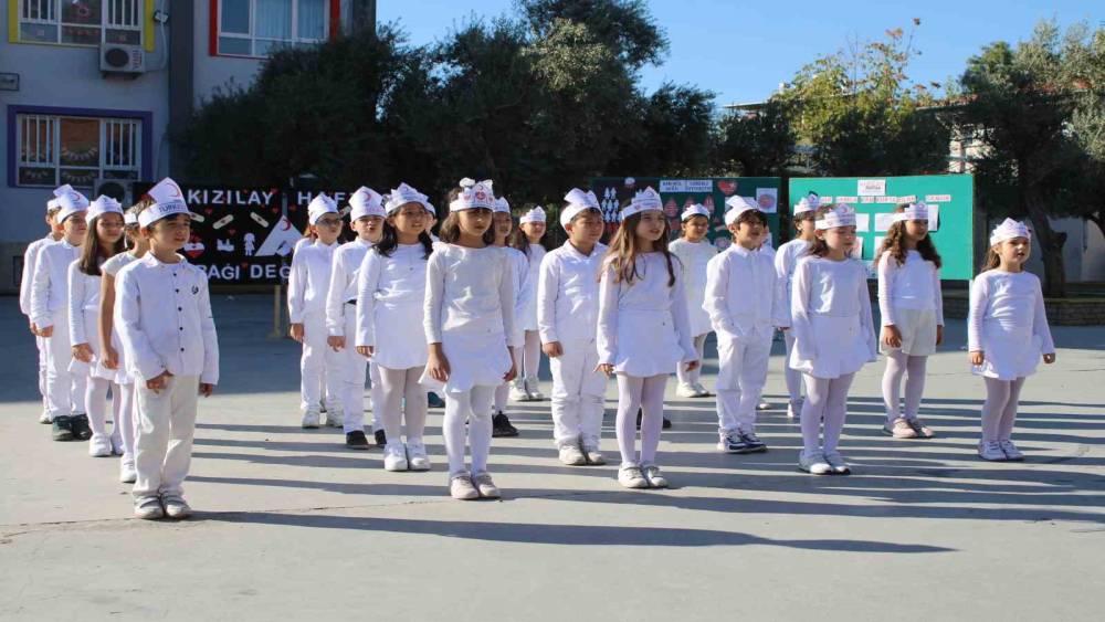 Aydın’ın Efeler ilçesinde minik öğrenciler kan bağışının önemine dikkat çekti.
