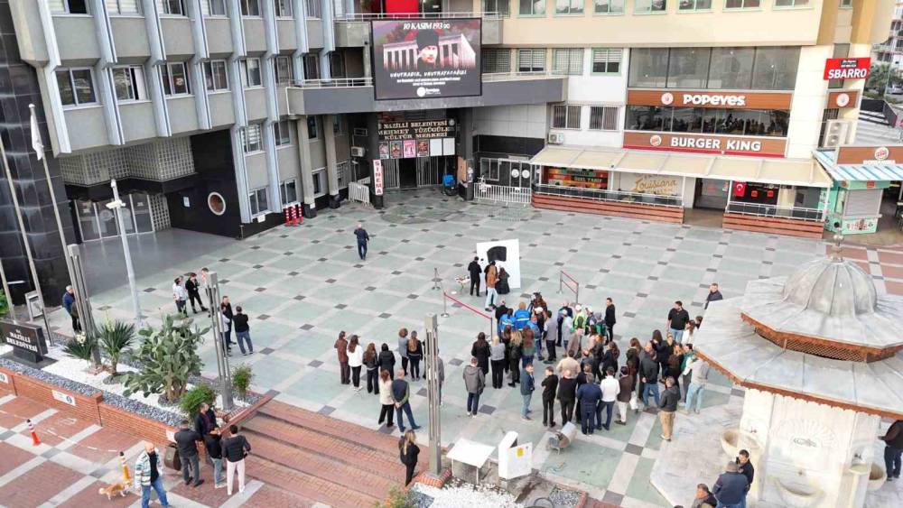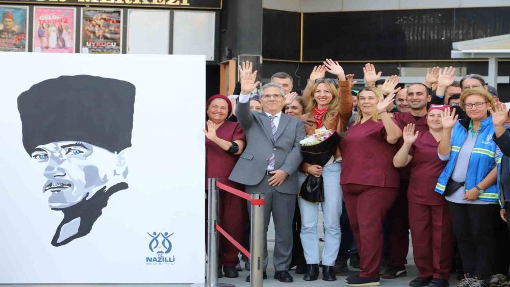 Nazilli Belediyesi, 10 Kasım Atatürk’ü Anma Günü dolayısıyla Cumhuriyet Meydanı’nda anlamlı bir etkinliğe imza attı. 750 belediye personeli, Gazi Mustafa Kemal Atatürk’ün portresini yağlı boya ile dev bir tuvale birlikte resmetti.Yaklaşık üç saat süren çalışmada, belediye personelleri tek tek fırçayla boyaya dokunarak Atatürk’ün portresine katkı sundu. Etkinlik, ressam Şimal Bilgiç’in koordinasyonunda gerçekleştirildi. Bilgiç’in rehberliğinde yürütülen çalışmada her bir personel, portrenin farklı bölümlerine renk katarak ortak bir eserin parçası oldu.Çalışmada son dokunuşu ise Nazilli Belediye Başkanı Dr. Ertuğrul Tetik yaptı.Etkinlik boyunca yapılan çekimler hızlandırılarak bir video haline getirildi ve çalışma sonunda hem belediye personeline hem de basın mensuplarına izletildi.Nazilli Belediye Başkanı Dr. Ertuğrul Tetik, tüm personelin katıldığı bu anlamlı etkinlikten gurur duyduğunu belirterek; "Atatürk’e ve onun hatırasına sahip çıkmak, onu yaşatmak bu şekilde olur. Bundan yıllar sonra bu resme baktığınızda kendinizle gurur duyacaksınız. Bu portreyi belediyemizin en güzel yerine koyacağız. Hepinizin emeklerine sağlık. Ulu Önderimiz Gazi Mustafa Kemal Atatürk’ü bir kez daha özlem ve minnetle anıyoruz" dedi.