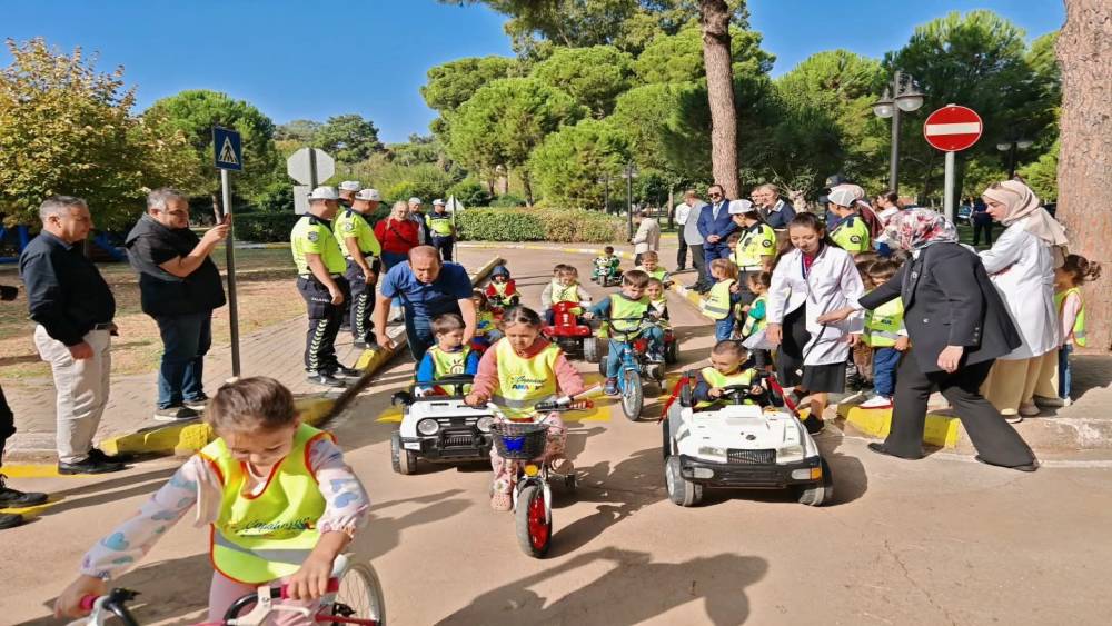 İlçede dört yıldır başarıyla yürütülen proje ile geçtiğimiz yıl 4 bin öğrenci trafik güvenliği konusunda bilinçlendirildi. Yeni eğitim-öğretim yılında ise ilçedeki yaklaşık 2 bin 500 okul öncesi öğrenciye özel olarak oluşturulan trafik eğitim sahasında uygulamalı eğitim, yaklaşık 2 bin 400 ilkokul 4. sınıf öğrencisine ise okullarında teorik trafik eğitimi verilmesi planlanıyor. Eğitimler, polis memurları ve jandarma personeli rehberliğinde gerçekleştirilecek.
