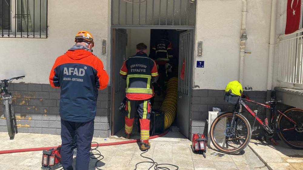 EFELER - Olay, Efeler Mahallesi 2257 sokak üzerindeki 5 katlı binanın giriş katında saat 12.30 sıralarında meydana geldi. Edinilen bilgiye göre, anne ve engelli oğlunun yaşadığı evde henüz bilinmeyen bir nedenle patlama meydana geldi. Büyük bir gürültü eşliğinde yaşanan patlama sonrası evde yangın çıktı. Evden alevlerin yükseldiğini fark eden vatandaşlar anne ve engelli oğlunun yardımına koştu. 112 Çağrı Merkezi’ne yapılan ihbar üzerine de bölgeye sağlık, polis, itfaiye ve AFAD ekipleri sevk edildi. Kısa sürede olay yerine gelen Aydın Büyükşehir Belediyesi İtfaiye Daire Başkanlığı ekipleri yangına ilk müdahaleyi yaptı. Evde oluşan yoğun duman müdahaleyi güçleştirirken, binada yaşayanlar tahliye edildi.