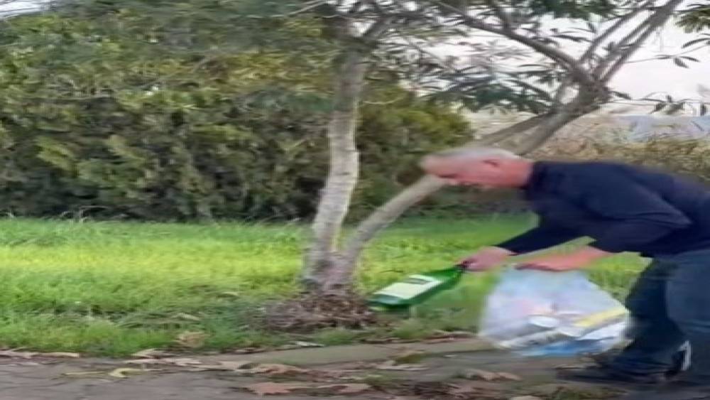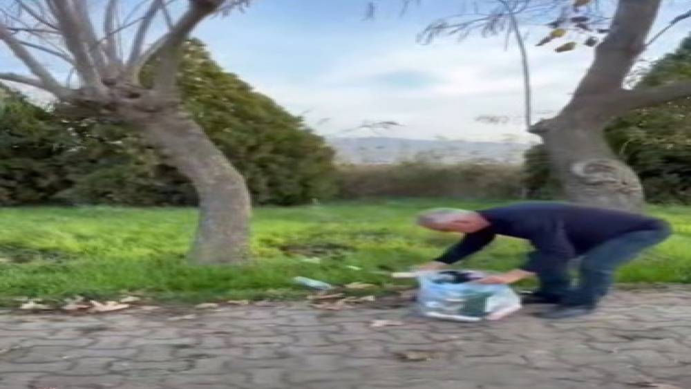 Şehitliğe saygısızlık yapanlara tepki gösterdi, çöpleri tek tek topladı