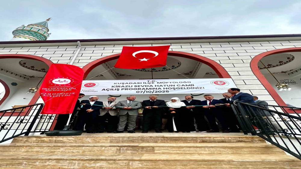 Aydın’ın Kuşadası ilçesinde Hayırsever Fehmi Aygün tarafından yapımı tamamlanan Kuşadası Müftülüğü Kirazlı Sevda Hatun Camii, Taziye Evi ve İmam Lojmanı, düzenlenen törenle hizmete açıldı.