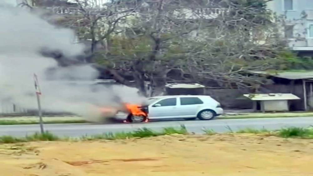 Aydın’ın Kuşadası ilçesinde bir otomobilde seyir halindeyken çıkan yangın itfaiye ekipleri tarafından söndürüldü.