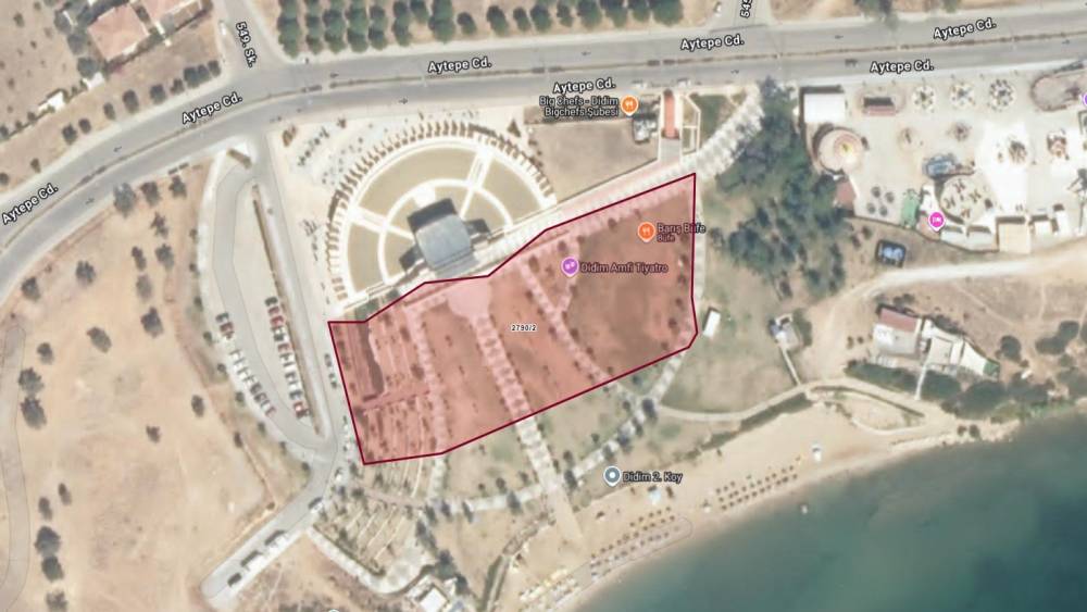 Asılan ihale pankartında ise 2 adet ticaret alanı olarak gözüken arsanın yanı sıra 1 adet ‘günübirlik turistik tesis alanı’ imarlı arsanın satışı duyuruldu. Satışa çıkarılan yerlerden birinin Didim Amfi Tiyatro bölgesinde 5 bin 824,91 metrekare yüzölçümlü arsa olduğu belirtildi.